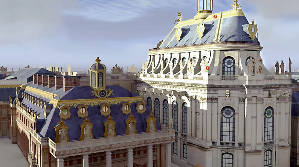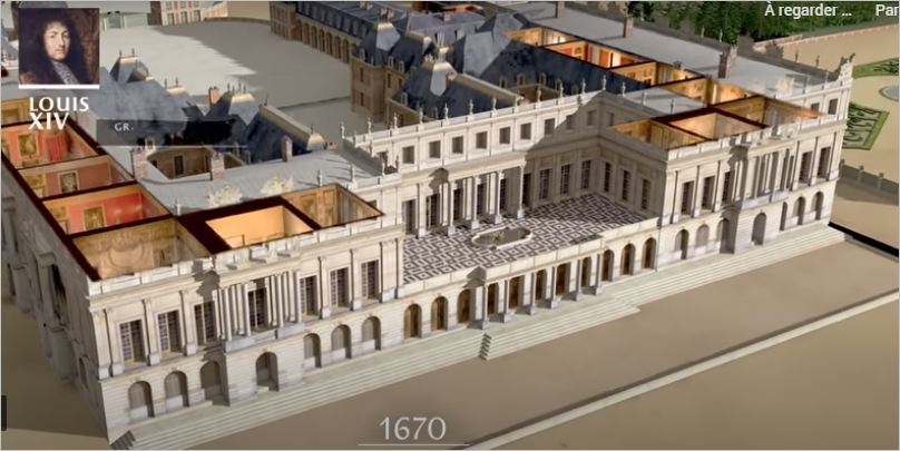Мансарт создает свой великий шедевр – Зеркальный зал, который связывает апартаменты короля и королевы. Зеркала поставляются недавно созданной королевской фабрикой Сен-Гобен, И это было истинным манифестом французских амбиций в эту эпоху, когда производство зеркал все еще оставалось монополией Венеции … Из новых зданий в Версале появились два больших крыла, в которых расположилась оранжерея, покои принцев крови, а также комнаты для представителей высшего дворянства, проживавших во дворце. Значительное внимание уделили парковой части комплекса. Были построены конюшни короля , помещения для кухонь и прислуг, отныне замок имел все для того чтобы король имел все для королевской жизни.