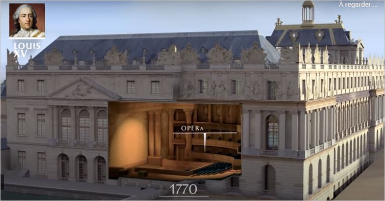После исчезновения Короля-Солнца Людовику XV и Людовику XVI было нечего добавить: они довольствовались обновлением королевских квартир, т, неукоснительно уважая величественный декор своего предка. Тем не менее, планы радикального преобразования дворца родились при Людовике XV, о чем свидетельствует крыло Габриэля, в котором находится парадная лестница, которая сегодня ведет к Большим апартаментам. Также при его правлении была построена Королевская Опера, роскошный концертный зал, который давно задумывался, но который фактически был в завершен в 1770 году, для празднования свадьбы дофина, будущего Людовика XVI с знаменитой австрийкой Марией- Антуанеттой. Архитектором этого ослепительного шедевра, который знаменует собой кульминацию работы Версальского дворца эпохи Старого режима был Анж-Жак Габриэль.