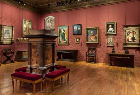 Здесь картины висят так, как их видели хозяева: в меблированных салонах, среди ковров, зеркал и каминов.