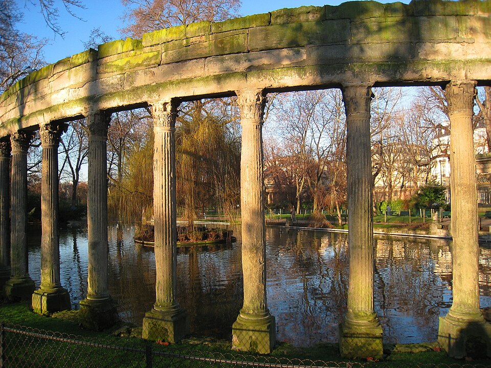 Колонны в античном стиле, египетская пирамида, деревенский мостик и знаменитая ротонда Шартра создают ощущение прогулки вне времени. В отличие от строгих Тюильри, здесь царит дух романтической прогулки.